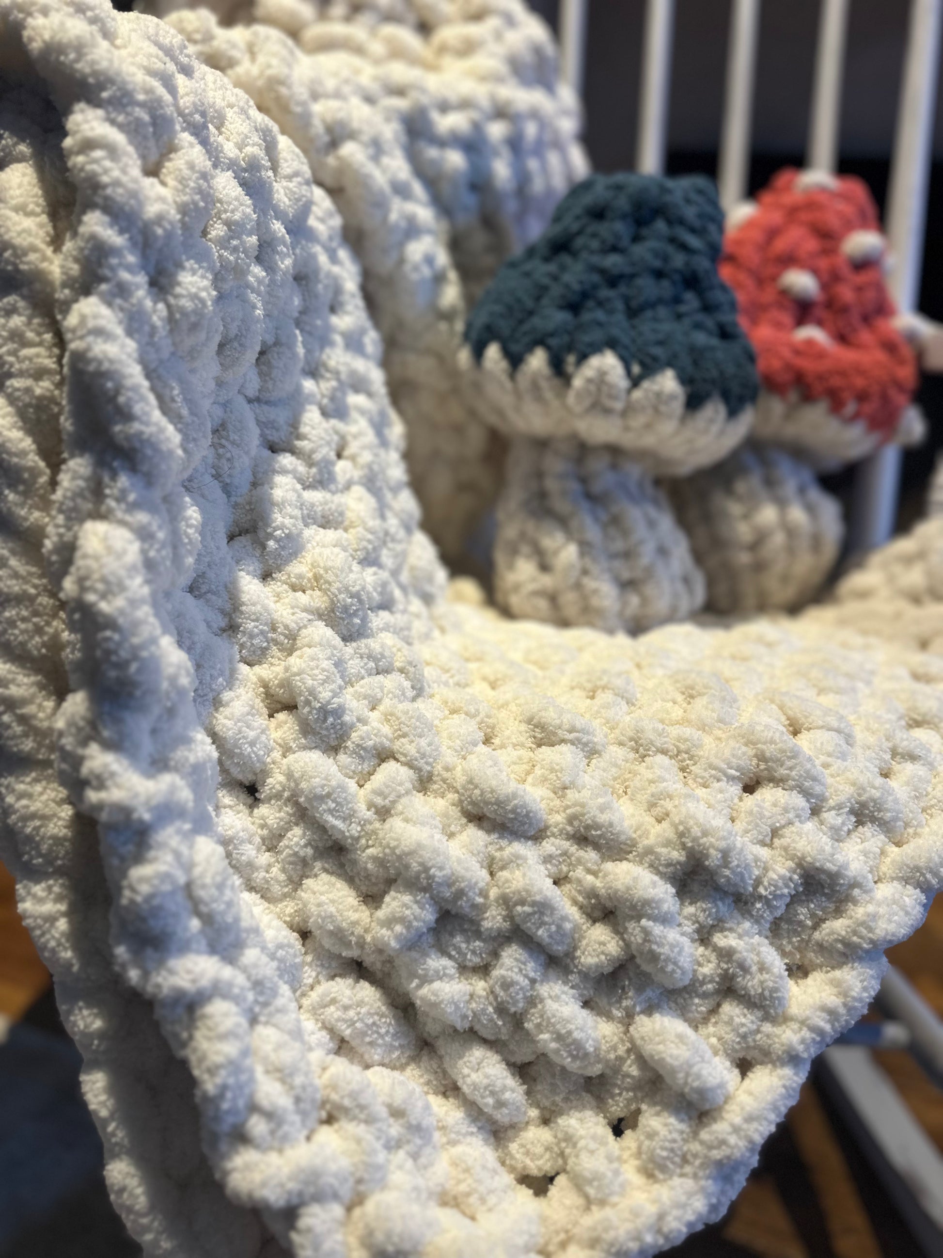 Wrap yourself in the plush comfort of my Woodland Knit Blanket, crafted from ultra-soft knit in a warm Vintage White.